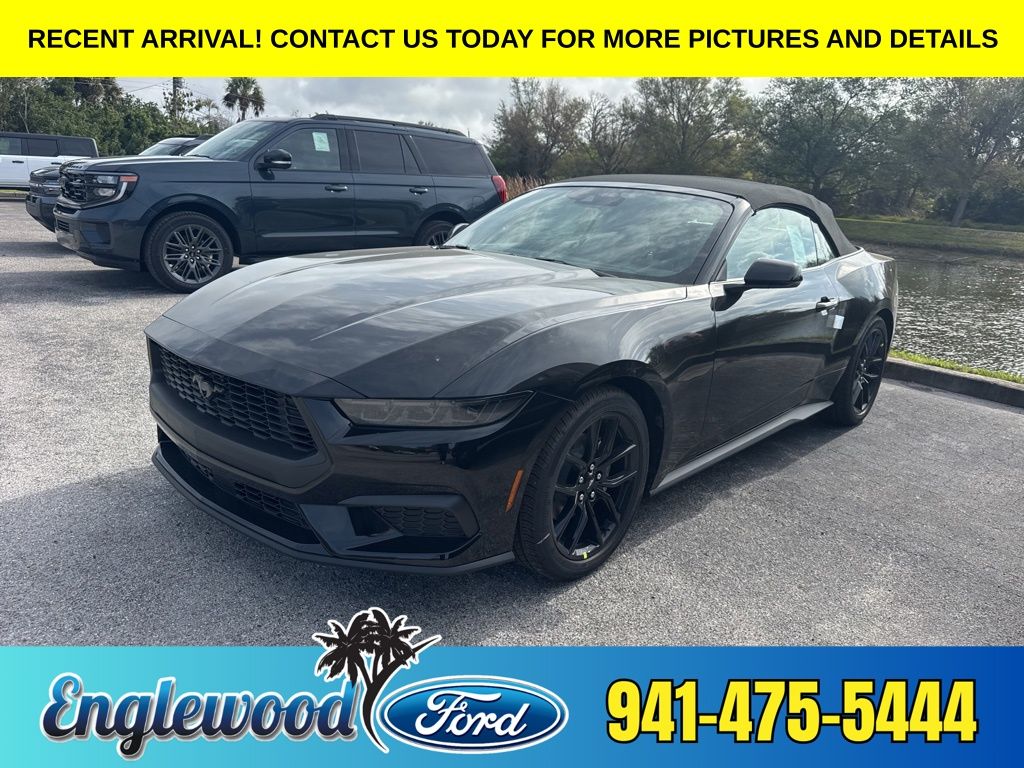 2026 Ford Mustang NITE PONY PACKAGE!, B&O SOUND SYSTEM!, 1st Row Carpeted Black Floor Mats, 9 Speakers, ABS brakes, Active Anti-Theft System, Active Valve Performance Exhaust, Air Conditioning, Aluminum Foot Pedals, AM/FM radio: SiriusXM with 360L, Automatic temperature control, Black Mirror Caps, Compass, Convertible roof lining, Electronic Stability Control, Emergency communication system: 911 Assist, Equipment Group 201A High Package, Exterior Parking Camera Rear, Ford Co-Pilot360 Assist+, Front Bucket Seats, Front dual zone A/C, Fully automatic headlights, Heated front seats, Illuminated entry, Leather Shift Knob, Magnesium Framed Panoramic Curved Display, Mustang Nite Pony Package, One-Year Connected Navigation, Outside temperature display, Overhead console, Passenger vanity mirror, Perimeter Alarm, Power convertible roof, Power driver seat, Power steering, Power windows, Radio data system, Rain sensing wipers, Rear Parking Sensors, Remote keyless entry, Security system, Sport steering wheel, Steering wheel mounted audio controls, SYNC® 4, Telescoping steering wheel, Tilt steering wheel, Traction control, Trip computer, Wheels: 19″ x 8.5″ Ebony Black-Painted Aluminum. EcoBoost® Premium RWD 10-Speed Automatic