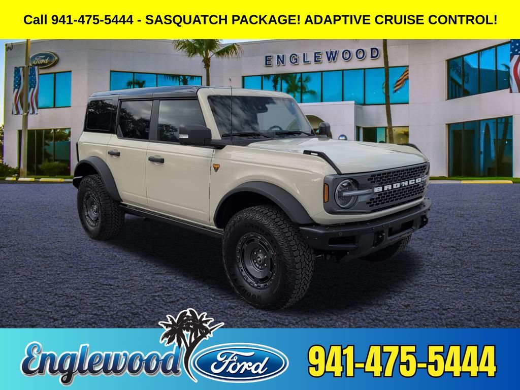 2025 Ford Bronco SASQUATCH PACKAGE!, ADAPTIVE CRUISE CONTROL!, 2-Door Intelligent Access w/Lock/Unlock, 360-Degree Camera, 4.7 Final Drive Ratio, 7 Speakers, ABS brakes, Adaptive Cruise Control, Air Conditioning, AM/FM radio: SiriusXM with 360L, Ambient Footwell Lighting, Auto High-Beam Headlamps, Auto-dimming Rear-View mirror, BLIS Blind Spot Information System, Compass, Connected Navigation, Door Storage Bags, Dr & Pass Illuminated Sliding Visor Vanity Mirrors, Driver door bin, Dual Smart Charging USB Ports, Dual-Zone Electronic Automatic Temperature Control, Electronic Stability Control, Emergency communication system: 911 Assist, Equipment Group 334A Lux Package, Evasive Steering Assist, Exterior Parking Camera Rear, Ford Performance Heavy-Duty Modular Front Bumper, Front Bucket Seats, Front fog lights, Front Parking Sensors, Front Row Heated Seats, Fully automatic headlights, Hard Top Sound Deadening Headliner, Heated door mirrors, Heated front seats, Heated steering wheel, High Clearance Fender Flares, High Clearance Suspension, Illuminated entry, Information on Demand Panel, Lane-Keeping System, Leather Shift Knob, Marine Grade Vinyl Heated Bucket Seats, Outside temperature display, Overhead console, Passenger vanity mirror, Position-Sensitive Bilstein Shock Absorbers, Power Outlet – Back Side of Center Floor Console, Power steering, Power windows, Pre-Collision Assist w/Automatic Emergency Braking, Radio: B&O Sound System by Bang & Olufsen, Rear Parking Sensors, Rear-View Camera, Remote keyless entry, Sasquatch Package, Security system, Sideview Mirrors, Steering wheel mounted audio controls, SYNC® 4, Telescoping steering wheel, Tilt steering wheel, Trip computer, Universal Garage Door Opener, Wheels: 17″ Carbonized Gray Painted Aluminum. Badlands 4WD 10-Speed Automatic