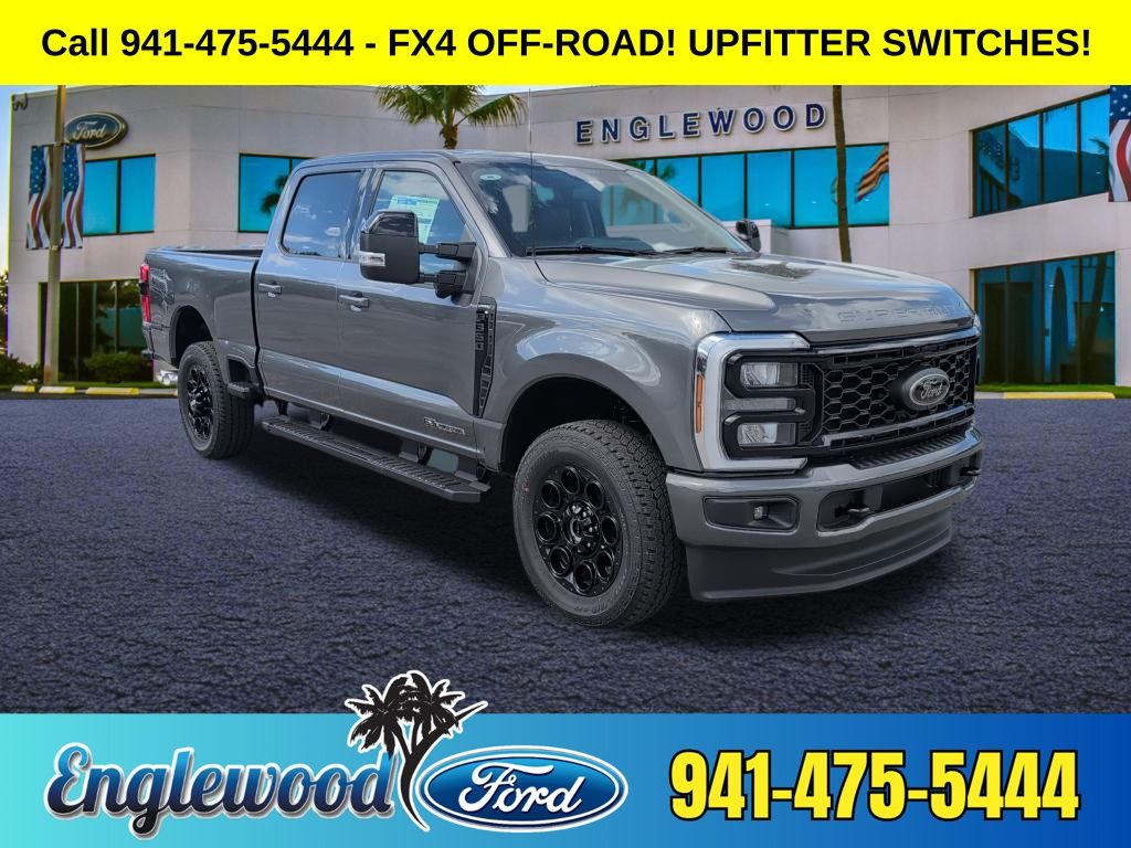 2026 Ford F-350SD FX4 OFF-ROAD!, UPFITTER SWITCHES!, 6″ Ebony Black Angular Running Boards, Black Appearance Package, Black Painted Front Grille Surround, Body Color Front & Rear Bumpers, Ebony Black Painted Mirror Caps, FX4 Off-Road Package, Hill Descent Control, Navigation system: Connected Navigation, Off-Road Specifically Tuned Shock Absorbers, Order Code 618A, Rear Wheel Well Liners (Pre-Installed), Tough Bed Spray-In Bedliner, Unique FX4 Off-Road Box Decal, Wheels: 20″ Ebony Black High Gloss. LARIAT 4WD 10-Speed Automatic