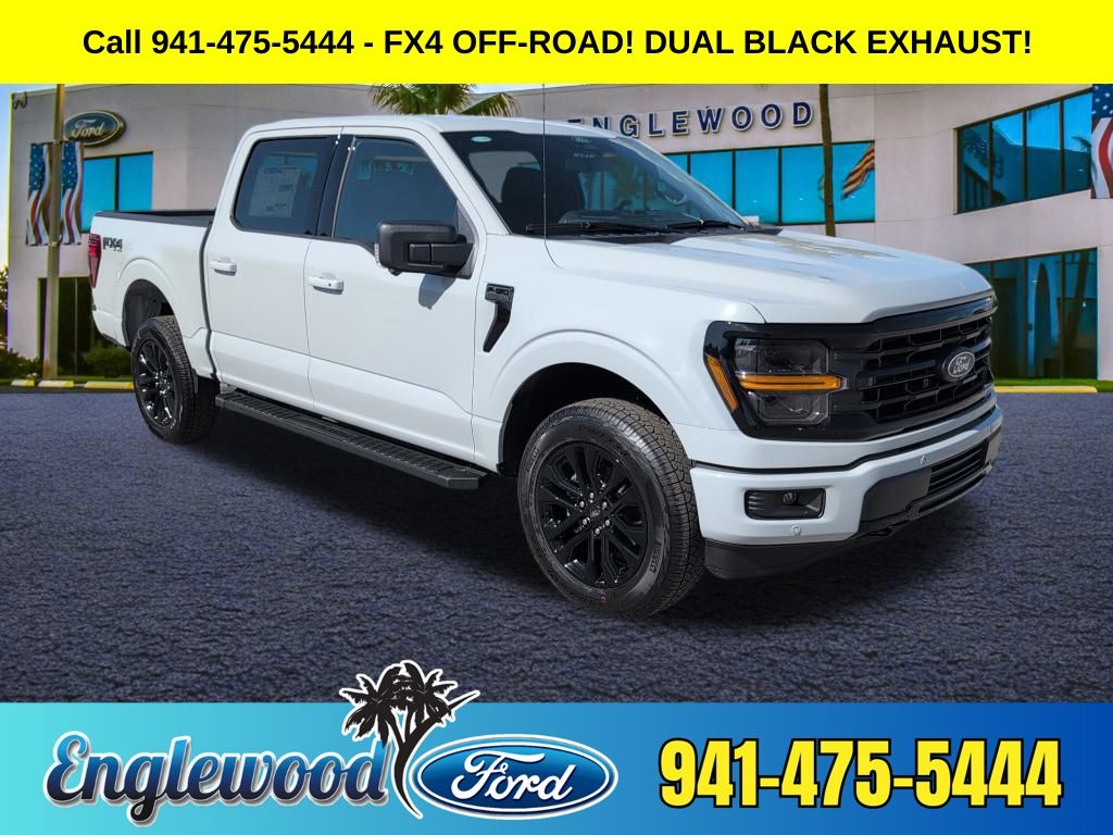 2026 Ford F-150 FX4 OFF-ROAD!, DUAL BLACK EXHAUST!, 360 Degree Camera, 400W Pro Power Onboard (Cab & Bed), 4×4 FX4 Off-Road Bodyside Decal, 6 Speakers, 6″ Black Running Boards, ABS brakes, Adaptive Cruise Control with Stop and Go, Air Conditioning, AM/FM radio: SiriusXM with 360L, Auto-Dimming Rear-View Mirror, Black Exterior Badging, Black Grille, Body-Color Door Handles, Body-Color Front and Rear Bumpers, Chrome Front and Rear Bumpers, Compass, Dark Interior Appliques, Driver vanity mirror, Dual Exhaust with Black Tips, Dual-Zone Electronic Automatic Temperature Control, Electronic Locking with 3.31 Axle Ratio, Electronic Stability Control, Emergency communication system: SYNC® 4 911 Assist, Equipment Group 302A Mid, Ford Co-Pilot360 Assist 2.0, Ford Connectivity Package (1-Year Included), Front fog lights, Front Parking Sensors, Fully automatic headlights, FX4 Off-Road Package, Gray Box Side Decal, Heated Front Seats, Hill Descent Control, Illuminated entry, Intelligent Access with Push Button Start, Internet access capable: 5G Modem – Ford Connectivity Package, Monotube Rear Shocks, Off-Road Tuned Front Shock Absorbers, Outside temperature display, Overhead console, Power Glass Heated Sideview Mirrors, Power steering, Power windows, Power-Sliding Rear Window, Radio: AM/FM Stereo with SiriusXM 360L, Rear Parking Sensors, Remote keyless entry, Remote Start System with Remote Tailgate Release, Security system, Speed control, Steering wheel mounted audio controls, SYNC® 4 with Enhanced Voice Recognition, Telescoping steering wheel, Tilt steering wheel, Towing Technology, Tray Style Floor Liner Without Carpet Mats, Trip computer, Unique Sport Cloth 40/Console/40 Front-Seats, Wheels: 20″ Gloss Black Painted Aluminum, Wrapped Steering Wheel, XLT Black Appearance Package Plus. XLT 4WD 10-Speed Automatic